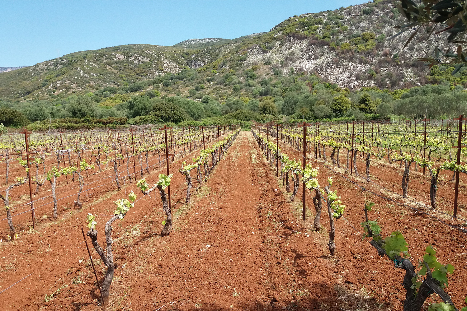 Στα 60 στρέμματα των ιδιόκτητων αμπελώνων του κτήματος που βρίσκονται στην περιοχή της Παλικής -στη μία από τις δύο μεγάλες αμπελουργικές ζώνες της Κεφαλονιάς- σε κάμπο που περικλείεται από μικρούς λόφους, στην περιοχή Βάτσα Κατωγής, καλλιεργούνται με ήπιες και βιοδυναμικές μεθόδους, σπάνιοι κλώνοι αρχαίων ποικιλιών, όπως Μαυροδάφνη, Μοσχάτο, Μοσχατέλα, Τσαούσι, Βοστιλίδι, Θειακό, Αρακλινό. Επιπρόσθετα, υπάρχουν και συνεργαζόμενοι αμπελουργοί στην ίδια περιοχή (με αμπελώνες περίπου 100 στρεμμάτων). Παράλληλα, το οινοποιείο διαχειρίζεται αμπελώνες στο ανατολικό τμήμα του νησιού, αλλά και στην περιοχή των Ομαλών, για την παραγωγή της επίσης φημισμένης τοπικής ποικιλίας Ρομπόλα Κεφαλληνίας.