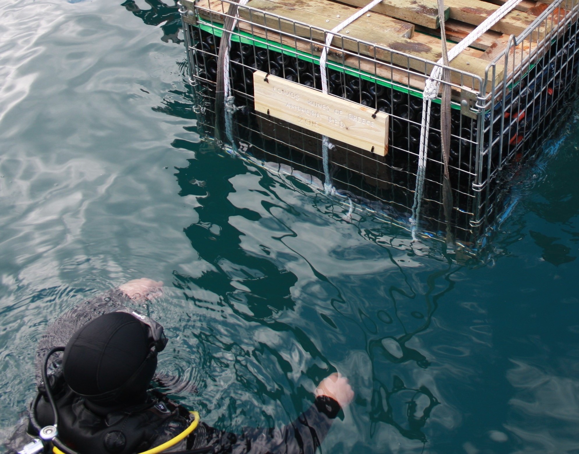 Ποντίστηκαν στην θάλασσα σε ικανό βάθος, φιάλες με ερυθρή ξηρή μαυροδάφνη του 2015 οινοποιημένη αρχαιότροπα σε αμφορείς!